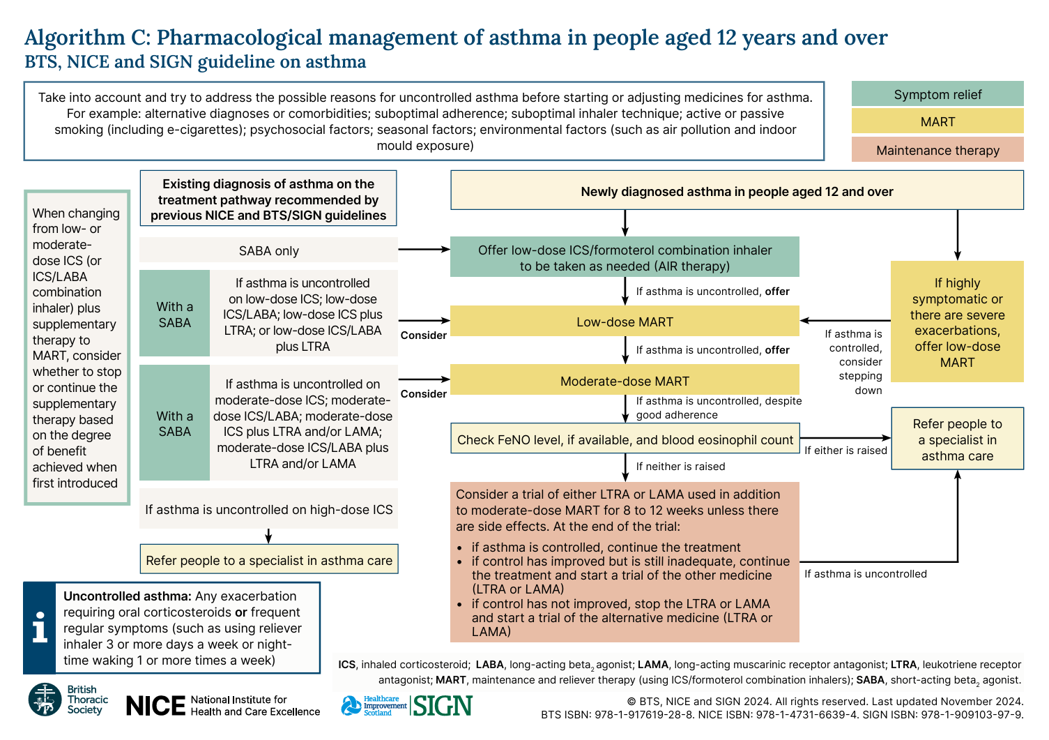 NICE guideline [NG245] Asthma: diagnosis, monitoring and chronic asthma management (BTS, NICE, SIGN). Published: 27 Nov 2024